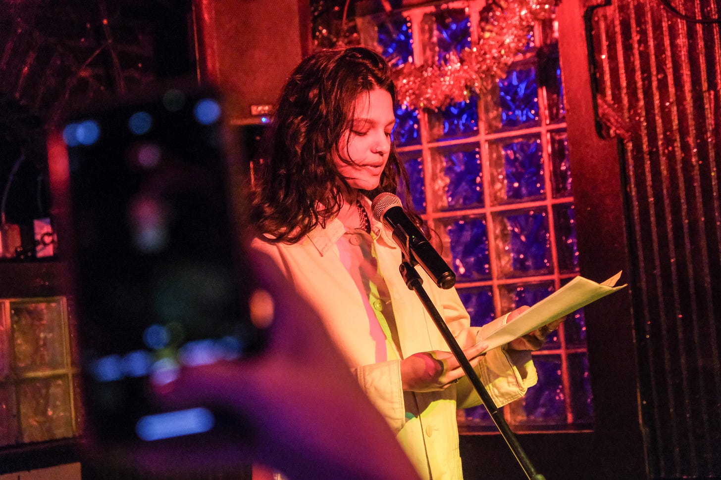 After a long and strange—let’s call it, for now, hibernation—I started putting more new work out in the world again last fall and will continue to this year, if God wills it. Here’s me reading a new short story (featuring cows, ships, a post-U.S. setting, a glamorous and withholding Malayali grandmother) at Metropolitan Bar earlier in the month. This was part of Ariél Martinez’ delightful reading series Perfume.